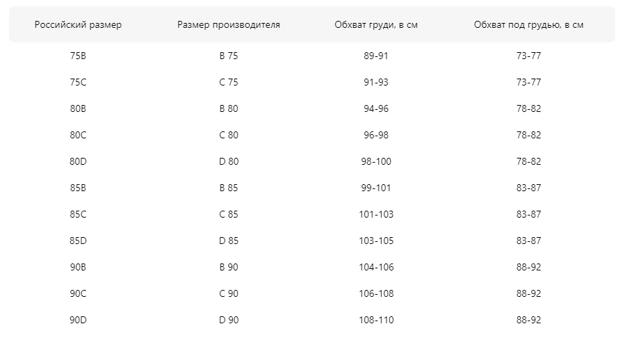 - Обхват под грудью, см