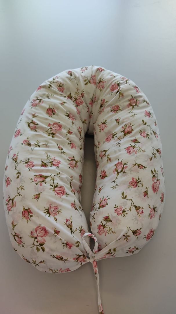 Подушка имеет форму бумеранга, что позволяет выбрать наиболее удобную позицию для кормления.