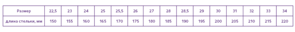 Таблица подбора размера